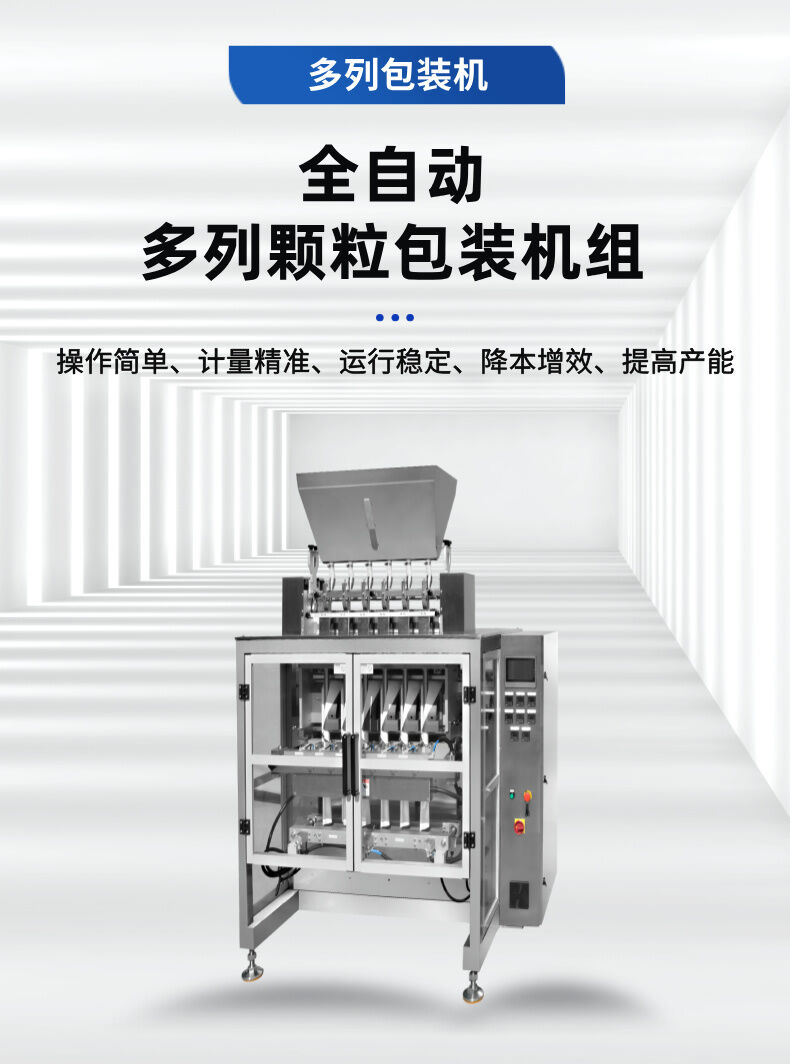 在傳(chuán)統包裝(zhuāng)設備中,生產效率較低且人(rén)工操作較多,往往無法滿足大規模生產的需求。而廣州邁馳推出的全自動多列顆粒包裝機(jī),通過智能(néng)化(huà)設計(jì),解決了這些問題。設備可以同時進行多個包裝列的操作,從而大幅提高(gāo)了生產效率。對於顆(kē)粒類產品如食品、藥品(pǐn)、化工原(yuán)料等(děng),這種設備的應(yīng)用尤為重要。